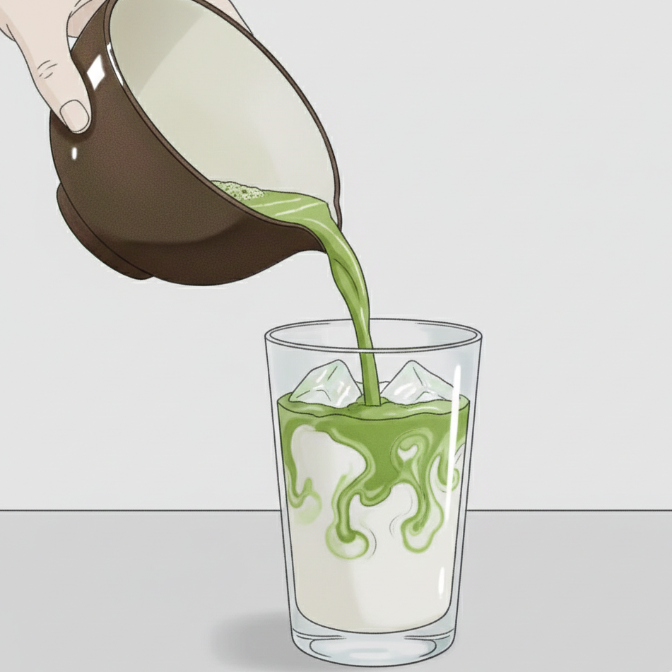 Je matcha is nu klaar om te drinken. Drink hem puur voor een volle umami-smaak, of schenk hem in je (iced) latte voor een zachte, romige matcha-ervaring.