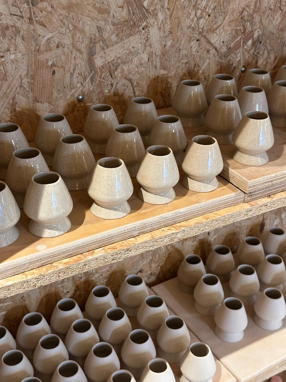 In het atelier van Ceramic Objects in Rijen begint alles met een eenvoudige klomp klei. Hierna wordt elke bowl en holder opgebouwd, gedraaid en verfijnd. Laag voor laag geglazuurd, alsof het ritueel al start voordat er matcha aan te pas komt. Daarna volgt het vuur: meerdere keren bakken op hoge temperatuur die de klei transformeren, de glazuur zijn diepte geven en elk stuk klaar maken voor dagelijks gebruik.
